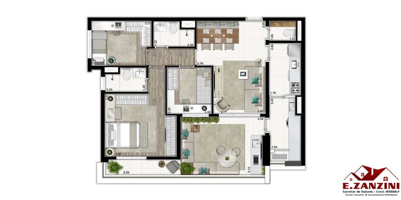 - Acabamento em porcelanato nas áreas frias do apto