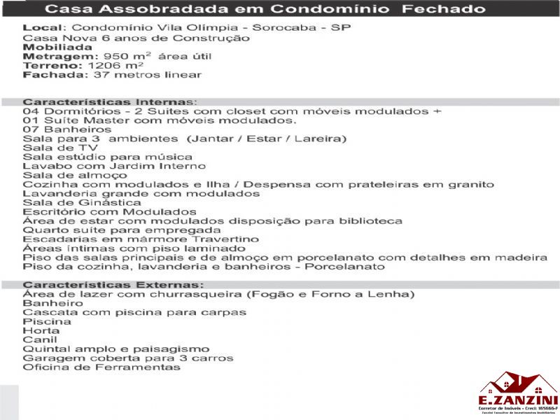 Linda Casa 950m2 área útil, 1206m2 de terreno em condomínio Alto Padrão em Sorocaba