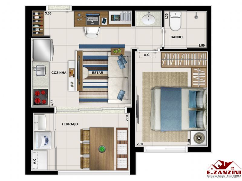 Ótima Oportunidade no Campo Belo Studio com ar condicionado e piso porcelanato