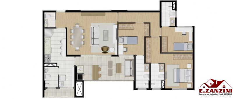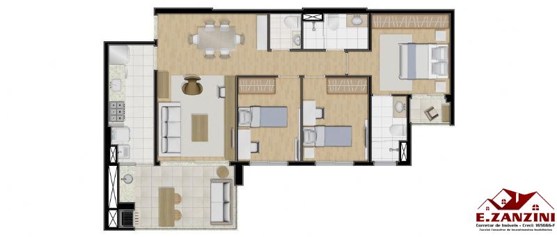 Apartamento de 116m², com 3 dormitórios e 3 suítes. Terraço com churrasqueira e 2 vagas de garagem!